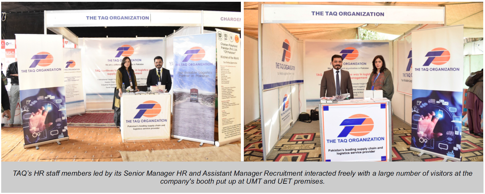 The TAQ Organization (TTO) recently participated in two job fairs hosted by the University of Management and Technology (UMT) and the University of Engineering and Technology (UET) in Lahore. As one of the 102 leading national and multinational companies present at the UMT job fair on February 21, 2023, and one of the 130 at the UET job fair on February 22, TTO showcased its commitment to Corporate Social Responsibility (CSR).